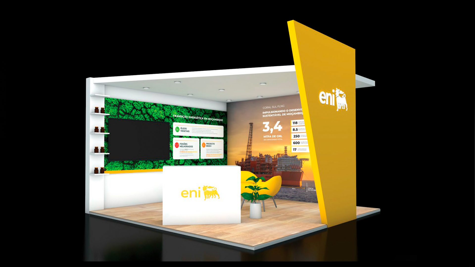 Stand corporativo desenvolvido para a ENI, combinando design modular, forte presença visual e funcionalidade operacional. A solução integrou identidade de marca, conteúdos multimédia e uma experiência de contacto optimizada, num projecto chave-na-mão concebido, produzido e implementado integralmente pela Playground.