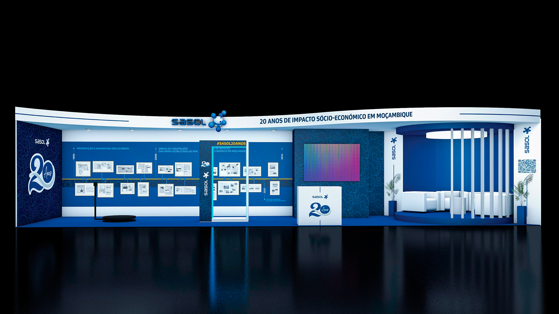 Stand comemorativo desenvolvido para a Sasol, assente numa narrativa de 20 anos de impacto sócio-económico em Moçambique. A solução combinou storytelling editorial, conteúdos multimédia e design modular, criando uma experiência de marca imersiva num projecto chave-na-mão concebido e implementado pela Playground.