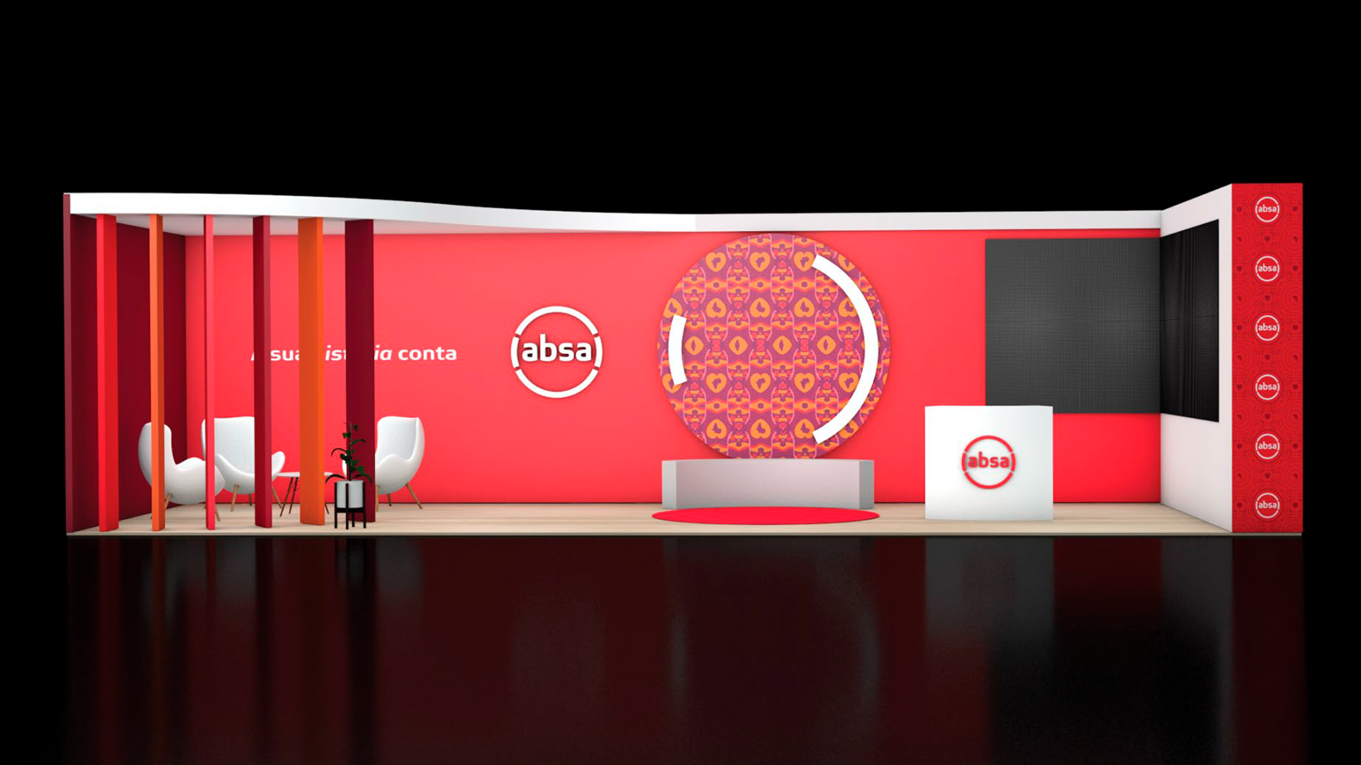 Proposta de stand desenvolvida para o ABSA, com design contemporâneo e forte identidade visual. A solução integra elementos culturais moçambicanos, conteúdos multimédia e espaços funcionais, reflectindo proximidade ao cliente e posicionamento premium num conceito chave-na-mão da Playground.